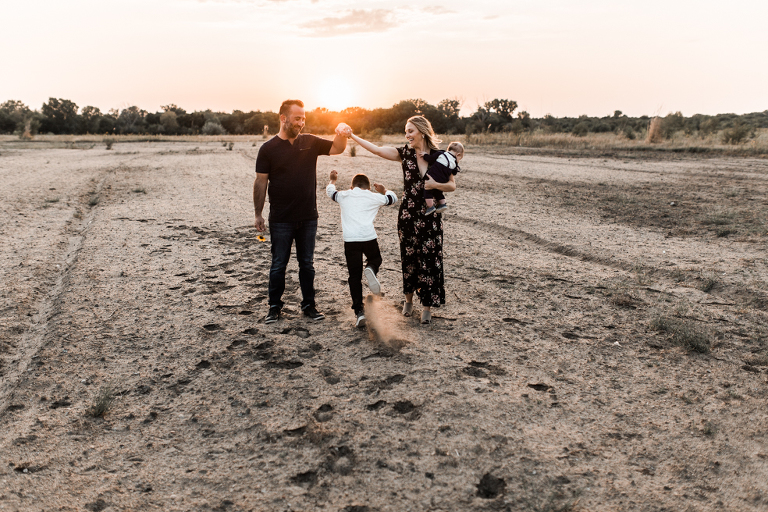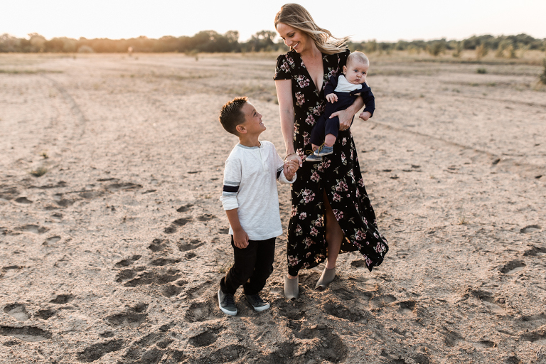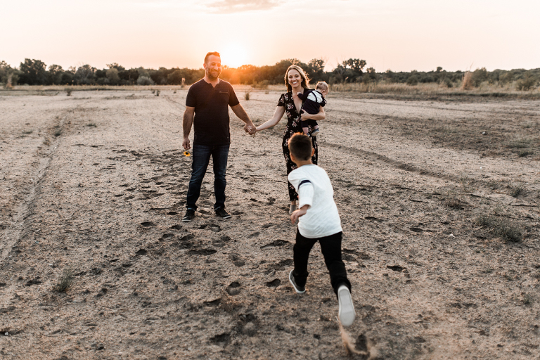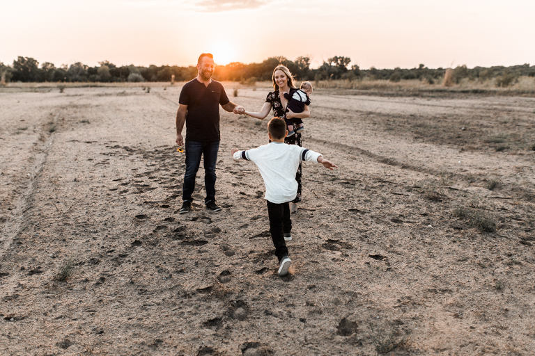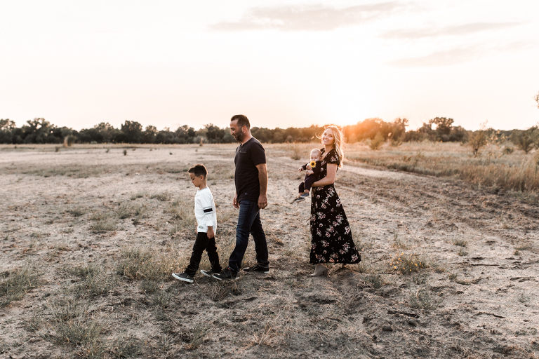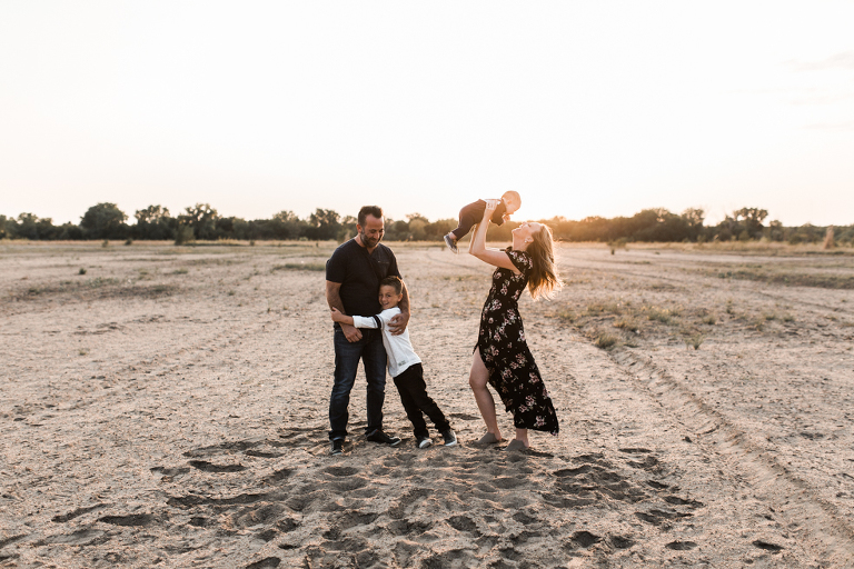 Kenzie and I daydreamed about places we could shoot their family photos this fall. Totally accessible places from Kansas like Joshua Tree clear across the country. Ha! Even places like Castle Rock in Kansas seem out of reach when you’ve got a busy family and sweet new baby Benjamin to consider. So I scouted and racked my brain of where to take this fam, and then we found a spot that feels barren and sandy and pretty perfect for desert-like conditions…in Kansas.