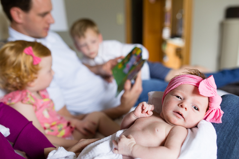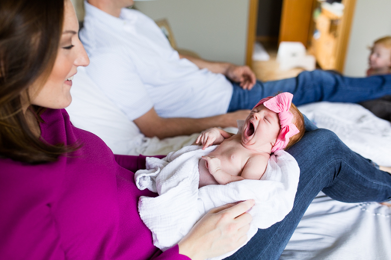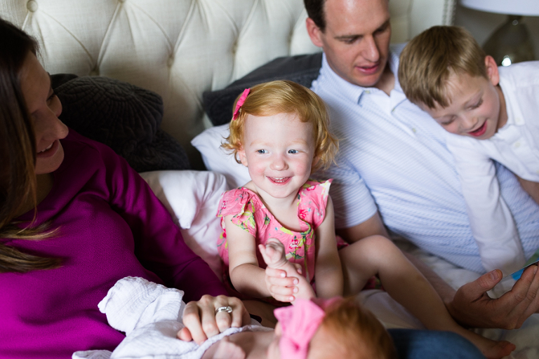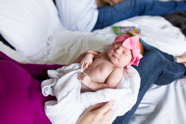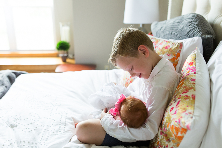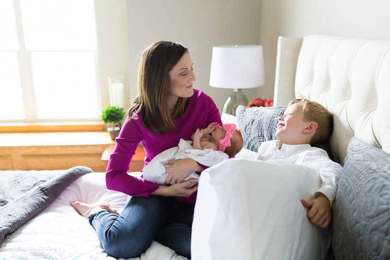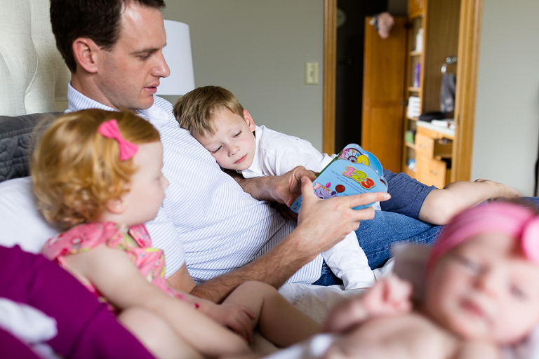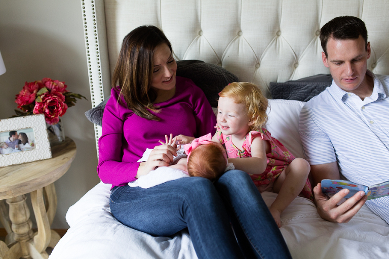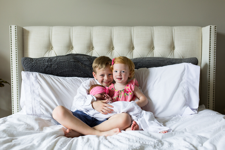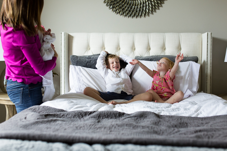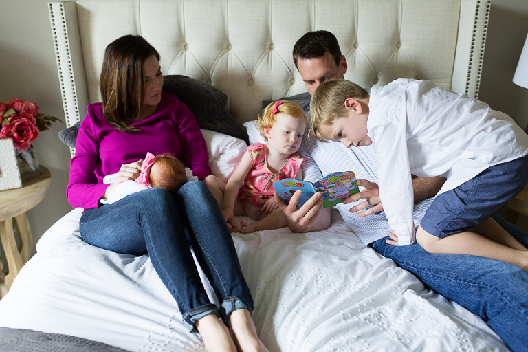 I had vivid flashbacks during this shoot as it’s the third time we’ve swaddled up this sweet family’s newest bundle of joy and had everyone cozy up on the bed to be take in the amazing miracle of new life, oohed and ahhed over dainty little noses, been completely smitten by fuzzy little shoulders, and just mesmerized by the rise and fall of such a perfect and precious little being.